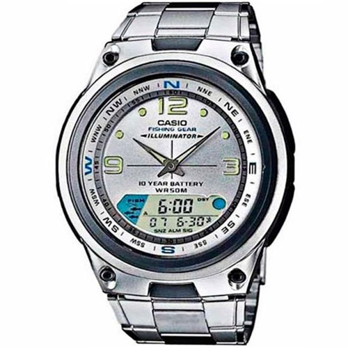 Relógio de Pulso Casio AW-82D-7AVDF, pulseira em aço inox, caixa em aço inox revestido em plástico de alta resistência, Fases da Lua com indicador de melhor dia para pesca, Bateria 10 anos, a prova d'água 50m. luz de led.